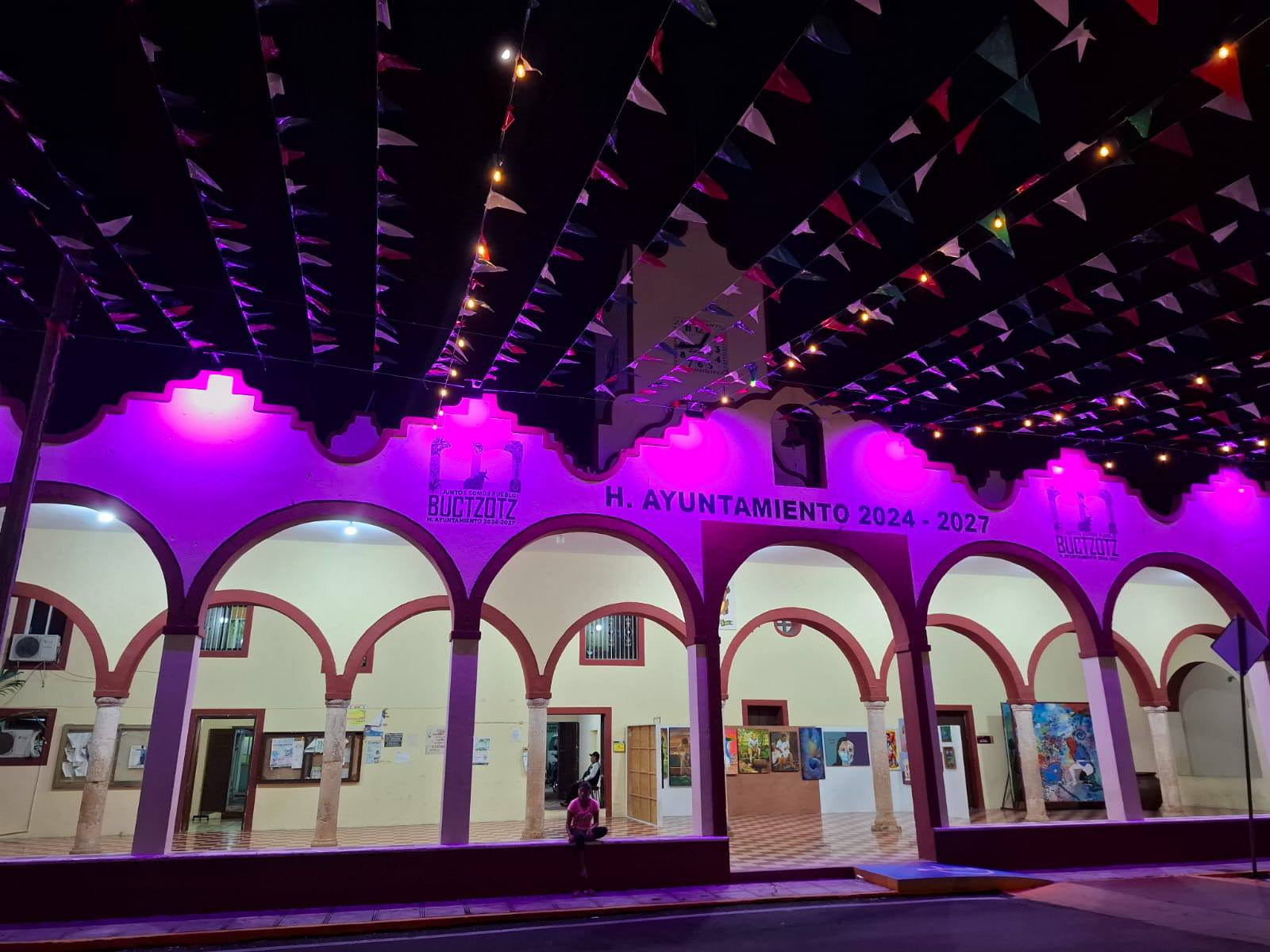En estos momentos se ilumina el palacio municipal de color rosa, por el cual se hace en el mes de octubre para simbolizar el apoyo